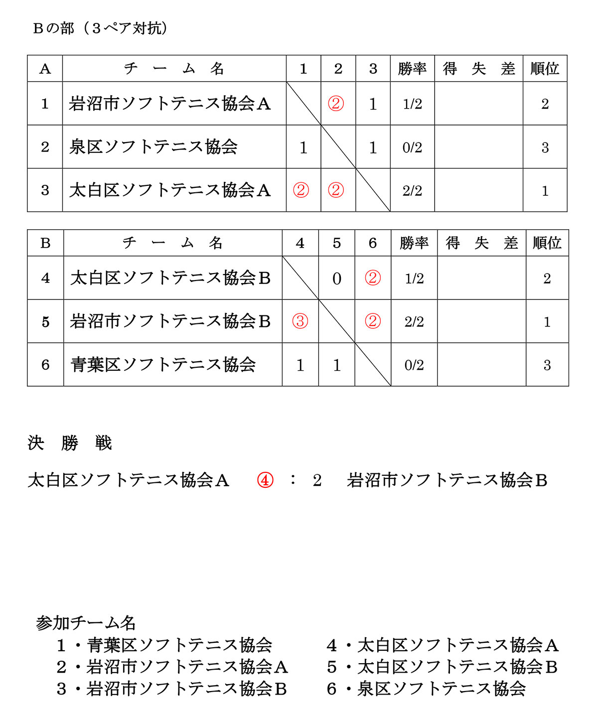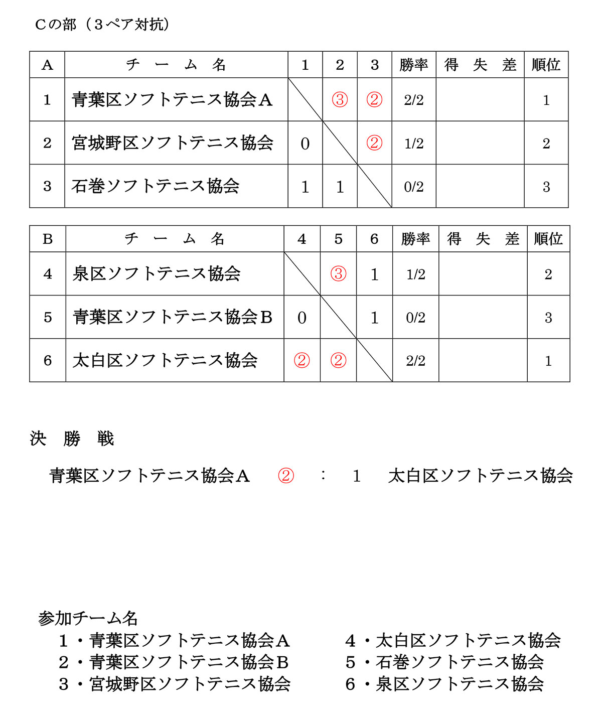令和7年度 宮城県民体育大会第36回市町村対抗ソフトテニス大会 結果